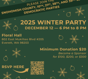 The 3rd Wednesday of each month is the monthly General Business Meeting of the 21st Legislative District Democratic Organization. All members and PCOs are invited to attend. An email invitation ‘Call to Meeting’ is sent ... Read More